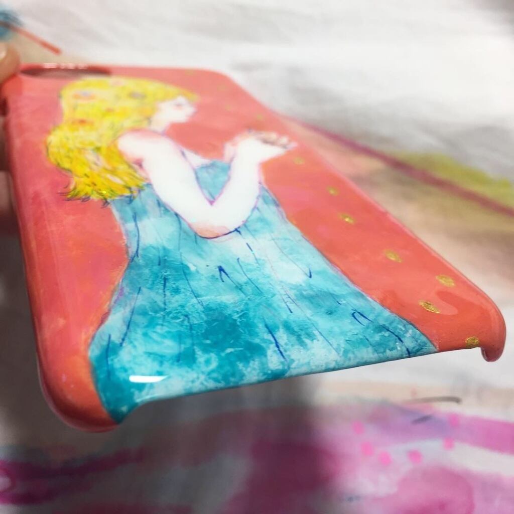 使用画材:アクリル絵の具/水彩絵の具/水性ニス/レジン/ラメ/花パーツ 等